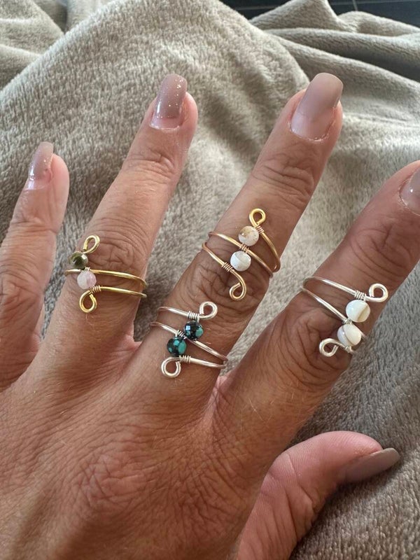 Gouden ring uit koperdraad met natuursteen kralen - facetkralen.